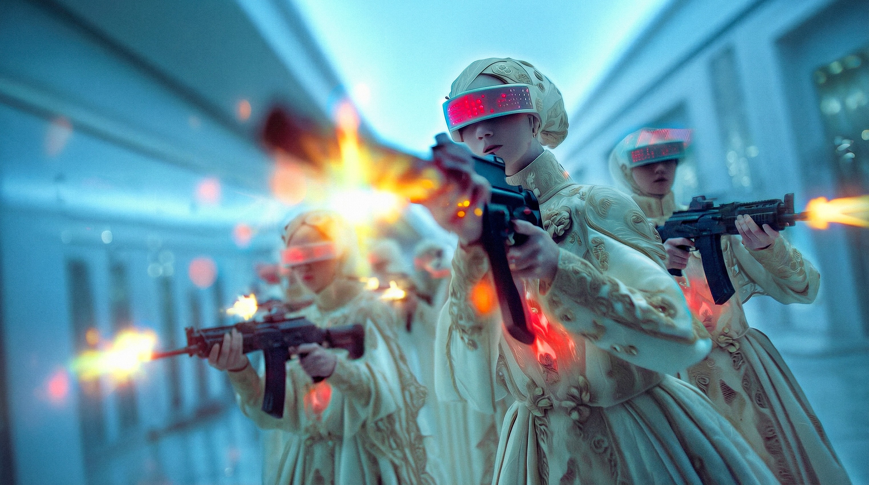 Violence is a recurring presence in the series, not as provocation, but as a response to the moment in which the work was created. Developed in 2025, amid the normalization of political violence, disinformation, and the silencing of dissent, violence enters the images as a symptom of a world in which rupture has replaced dialogue and resistance is increasingly framed as extremism. Using AI as a creative tool, the work embraces fiction and metaphor as part of its visual language. The work resists singular interpretation, holding ambiguity as part of its visual language.